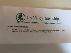 A letter to Tay Valley Councillors (cost of Integrity Commissioner hearings)